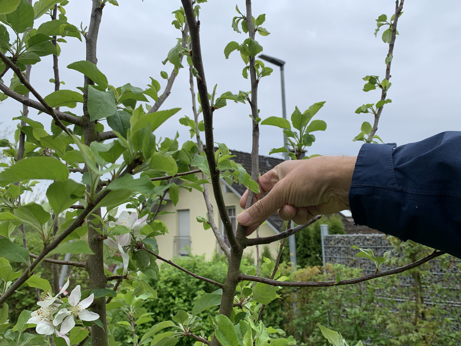 Ein weiterer Pflegeschnitt ist für den Sommer geplant, damit der junge Baum im kommenden Jahr hoffentlich seine ersten Früchte tragen kann.