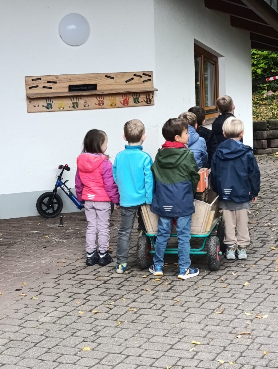 Die Vereinsmitglieder Bruno Schaubrenner, Hans-Peter Riehle und Lena Einsele überbrachten die Spenden persönlich. Zuvor hatten die Mitglieder des Vereins die Äpfel auf der Streuobstwiese im Bereich „Killweg“ im Gewann Steinacker geerntet. Dort stehen zahlreiche Hochstammbäume, deren Früchte sorgfältig von Hand gelesen wurden. Der Apfelsaft wurde anschließend frisch für die Kinder gepresst.