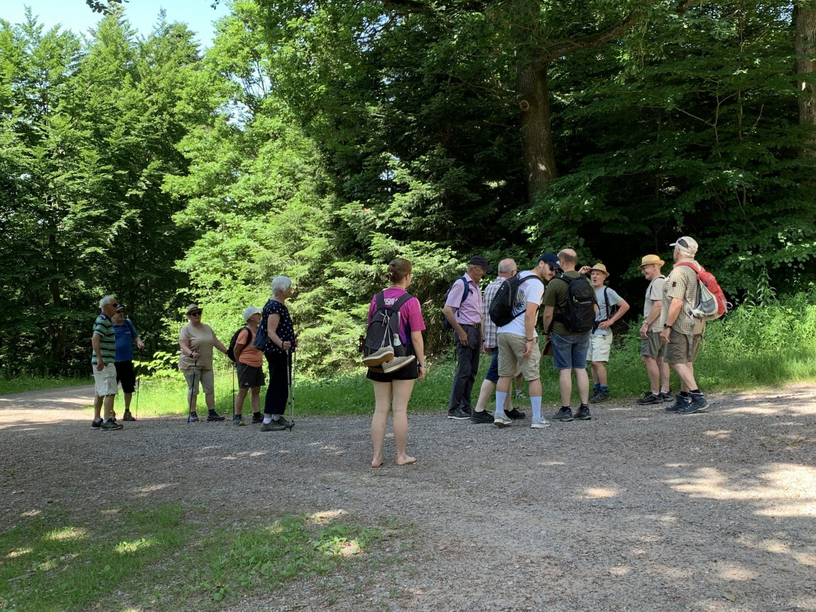 Rund 17 Wanderfreudige folgten unserem Aufruf und trafen sich pünktlich um 14 Uhr am Sportheim des SV Oberschopfheim. Von dort starteten wir unsere Tour unter der bewährten Führung von Hans-Peter, die uns zunächst in Richtung des Oberschopfheimer Waldes führte.