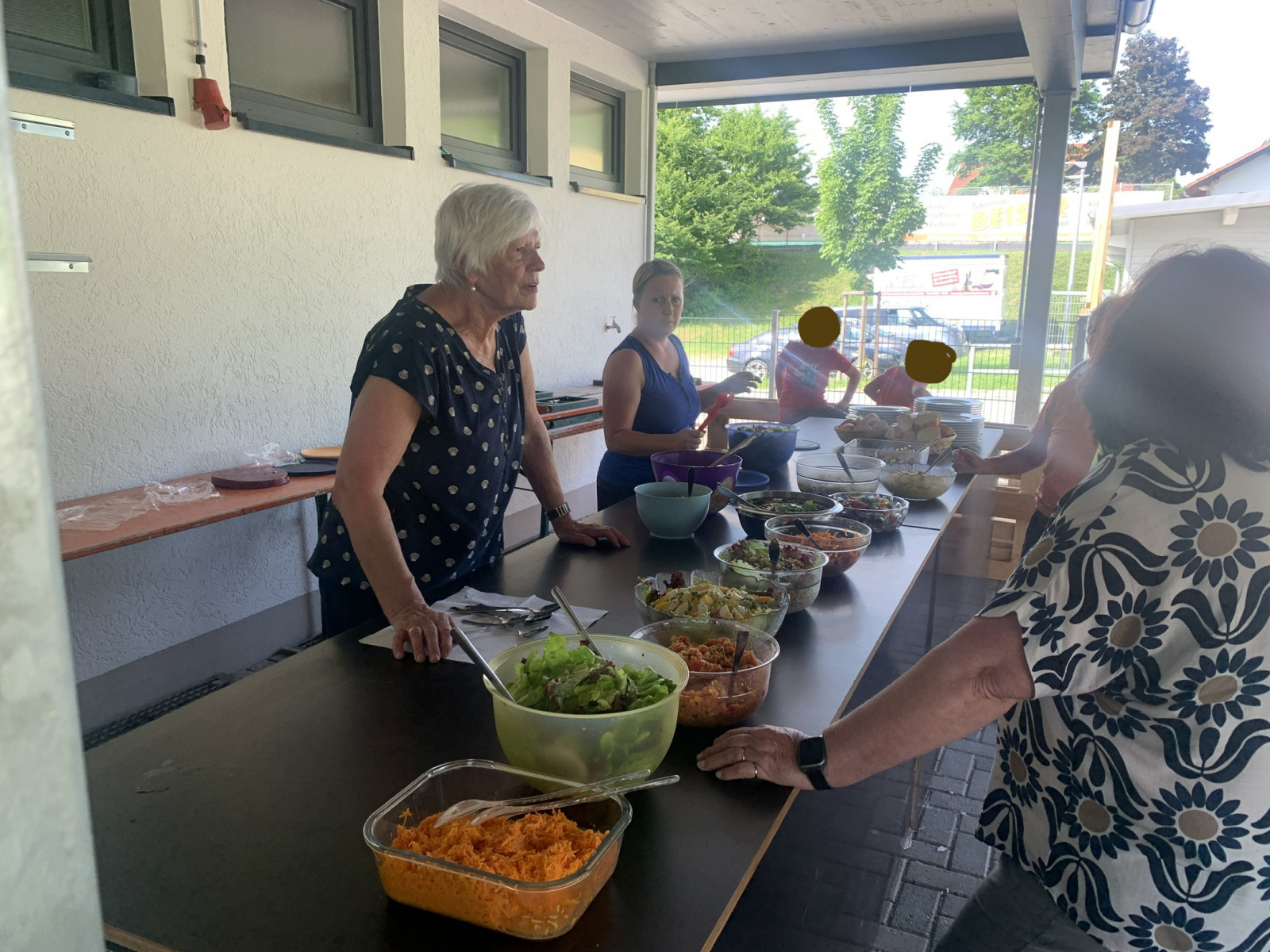 Nach etwa zwei Stunden kehrten wir zum Sportheim zurück. Dort warteten bereits weitere Gäste auf uns, denn der gemütliche Teil des Tages stand noch bevor: ein gemeinsames Grillen mit selbstgemachten Salaten, leckerem Grillgut, kühlen Getränken und lockeren Gesprächen rundete diesen gelungenen Tag ab.