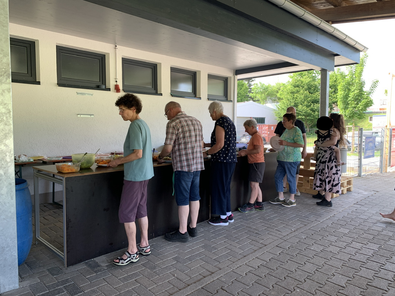 Nach etwa zwei Stunden kehrten wir zum Sportheim zurück. Dort warteten bereits weitere Gäste auf uns, denn der gemütliche Teil des Tages stand noch bevor: ein gemeinsames Grillen mit selbstgemachten Salaten, leckerem Grillgut, kühlen Getränken und lockeren Gesprächen rundete diesen gelungenen Tag ab.