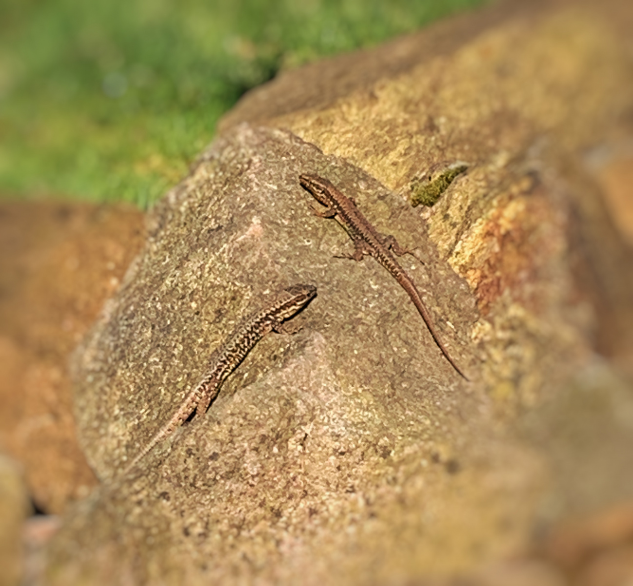 Ein kleiner Geheimtipp für aufmerksame Beobachter: Wer einen Blick hinter das Insektenhotel wirft, kann mit etwas Glück kleine Eidechsen entdecken. Sie genießen die ersten warmen Sonnenstrahlen auf den Steinen – aber Vorsicht! Schon die kleinste Bewegung lässt sie blitzschnell in ihren Unterschlupf verschwinden. Doch keine Sorge, nach kurzer Zeit kehren sie zurück und suchen erneut ihren Platz in der Sonne.