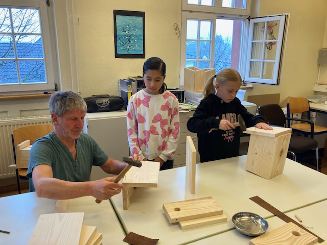 Nistkästenbau mit den Drittklässlern der Grundschule Oberschopfheim
