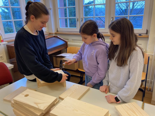 Nistkästenbau mit den Drittklässlern der Grundschule Oberschopfheim